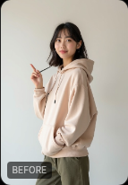 SNS映えするコーデが即座に確認できて最高です。撮影前にスタイリングを試せるので、失敗がゼロになりました。変換クオリティも本当に高くて、顔がそのまま自然に変わるのが感動的です。